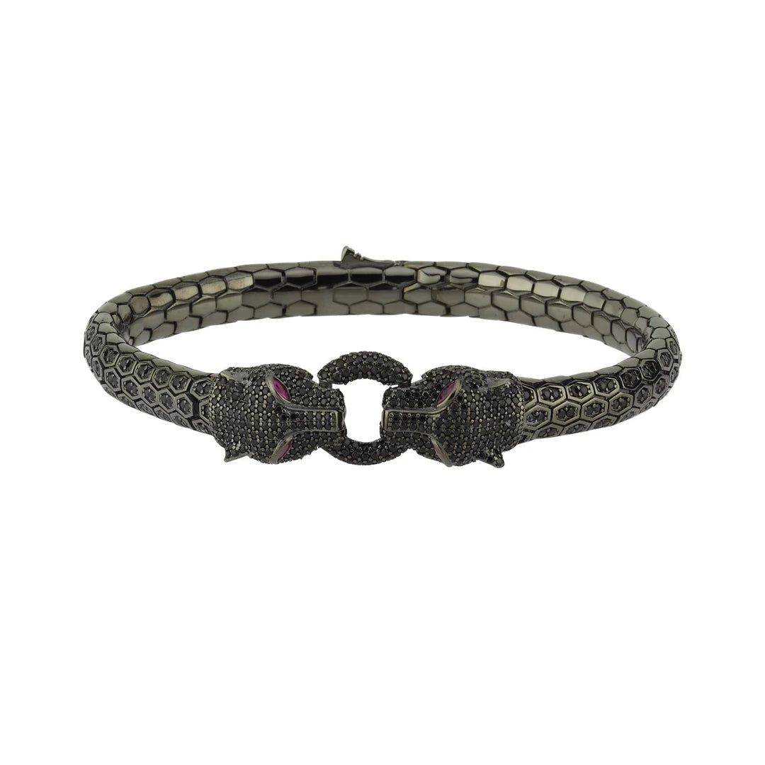 Tam Siyah Zirkonyum Pırlantalarla Süslenmiş Panher Başlı Gümüş Bileklik